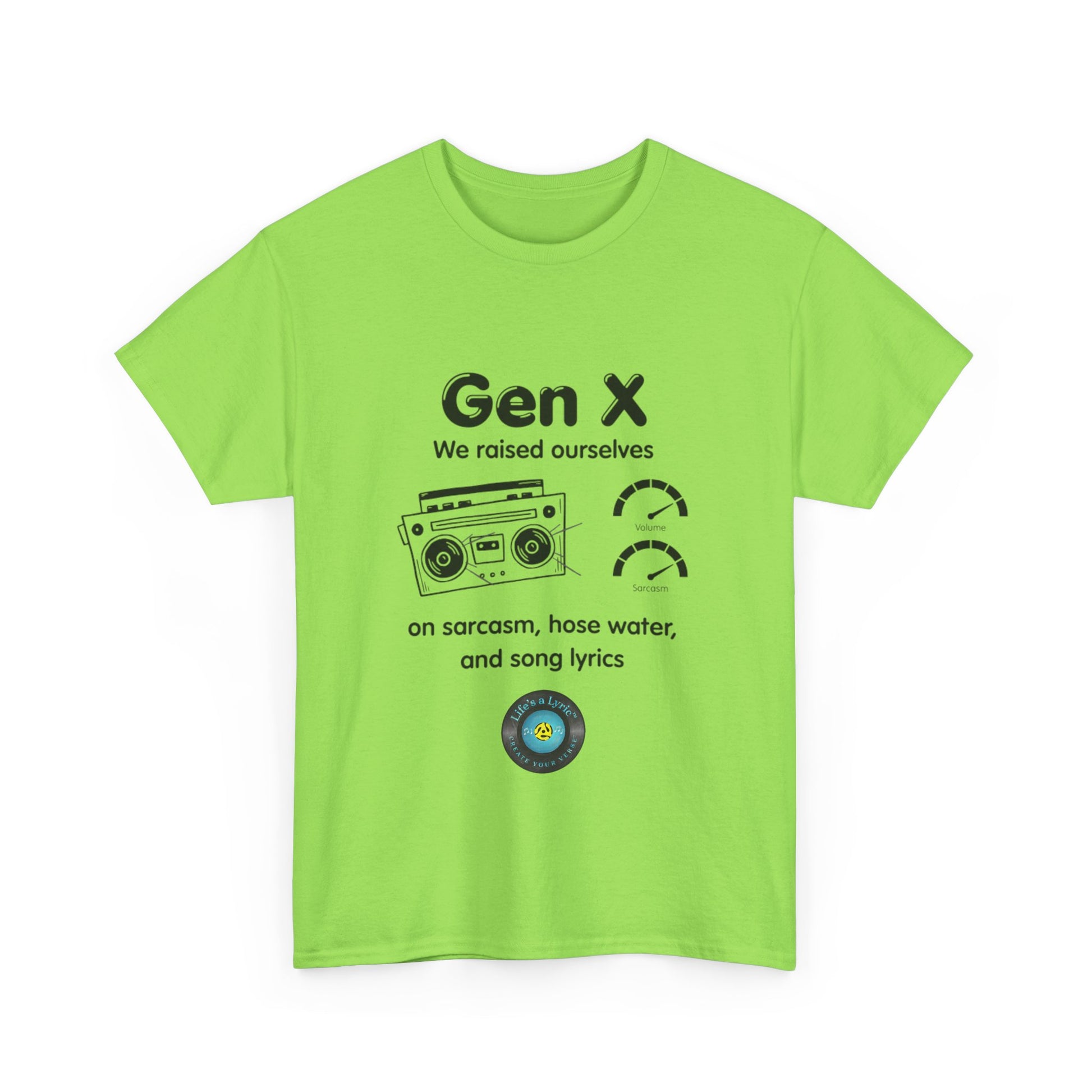 Raised on mixtapes, sarcasm, and hose water? Same. The Life’s a Lyric™ Gen X Vibes Tee brings the perfect blend of retro edge and lyrical attitude to your everyday style. Made for those who lived through cassette rewinds, weekend cartoons, and the golden age of eye rolls, this shirt says what we’re all thinking — with a beat.